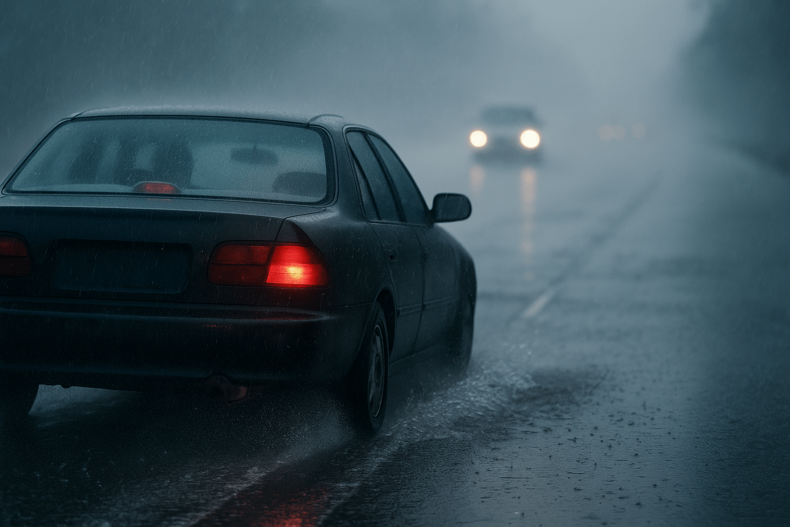 제동거리 증가, 수막현상, 시야 확보 실패 등이 한꺼번에 발생하기 때문입니다.