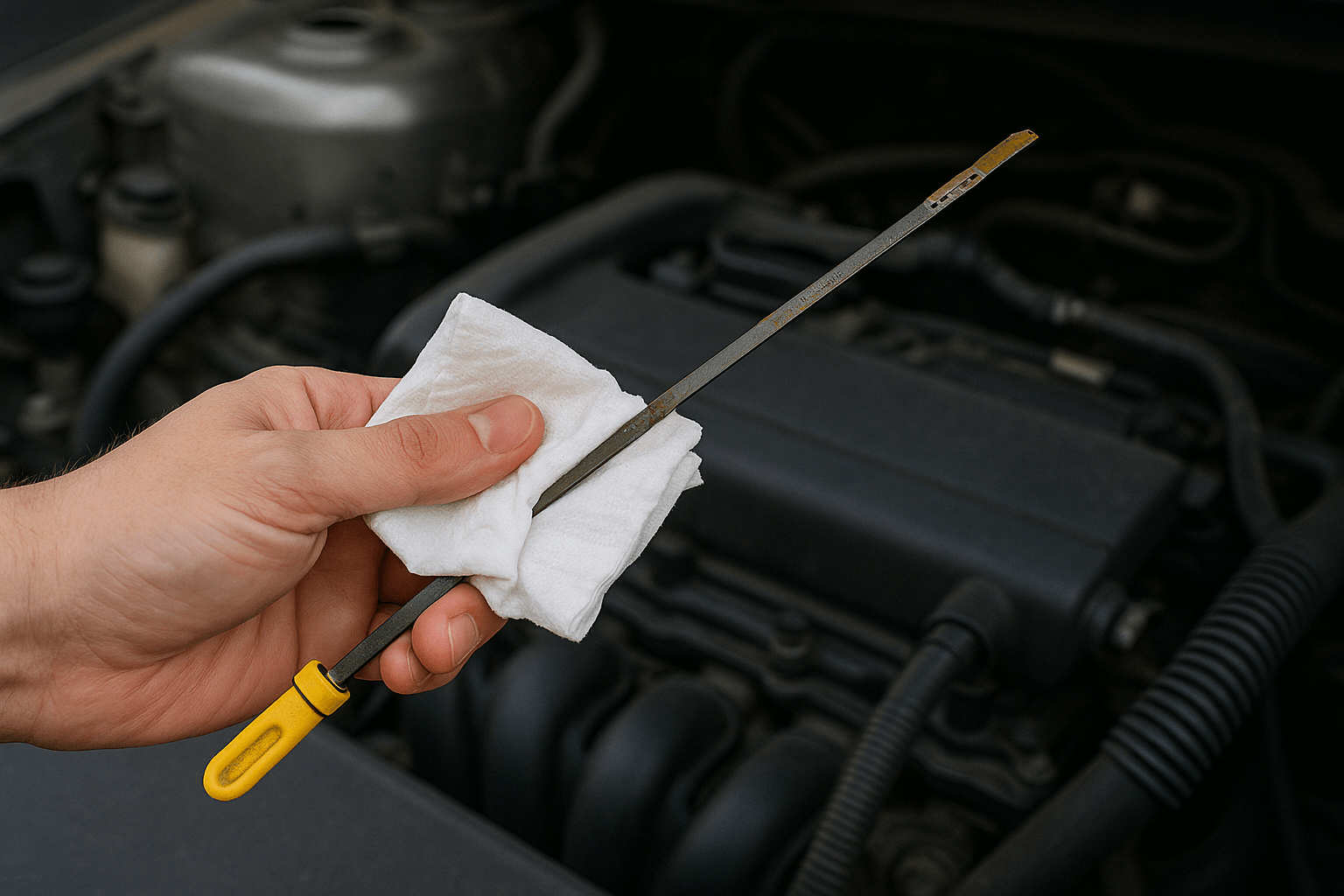 - 게이지를 한 번 뽑아 깨끗한 천이나 휴지로 닦기