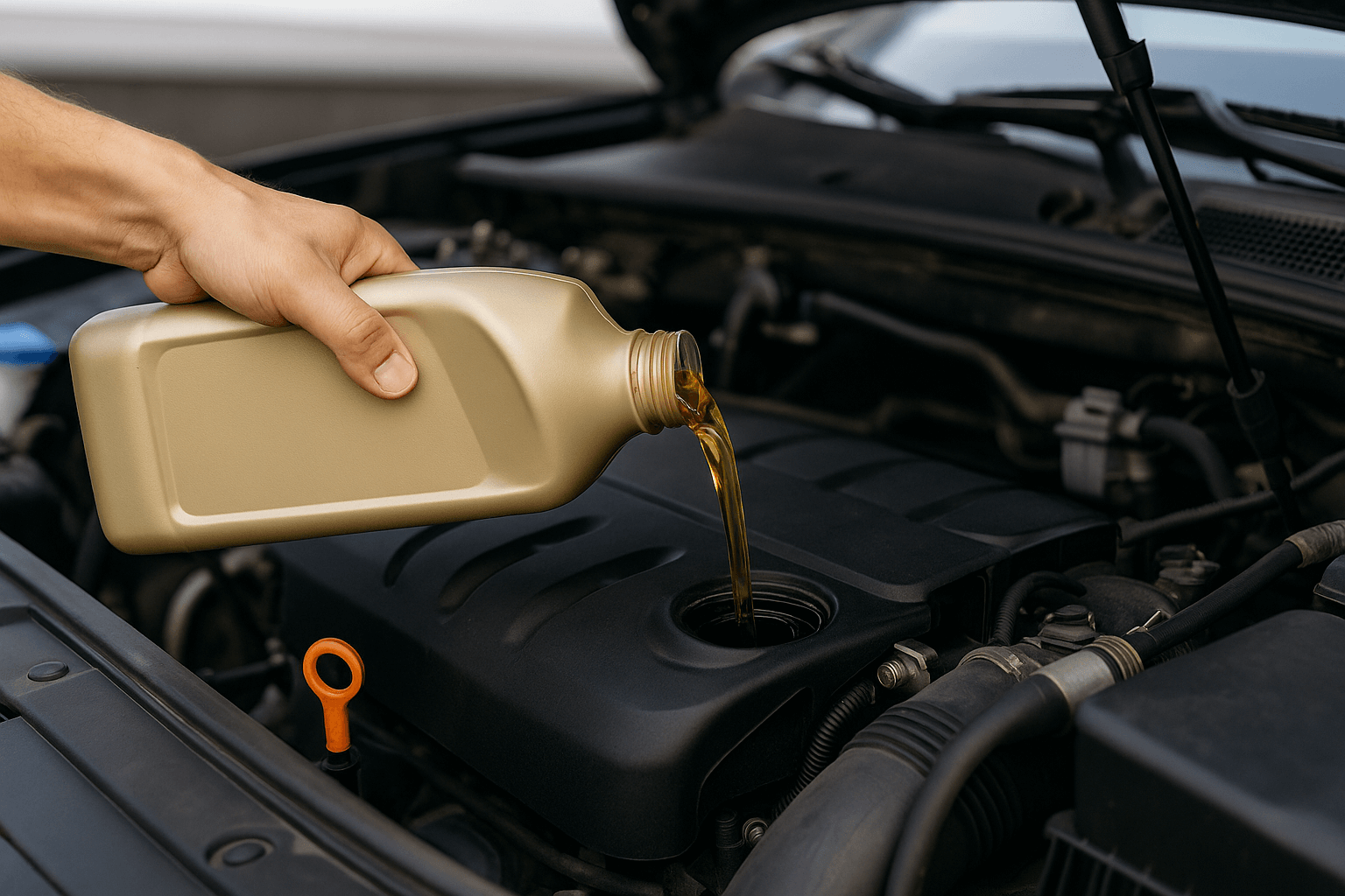 - 오일 주입구를 열고 천천히 소량씩 보충